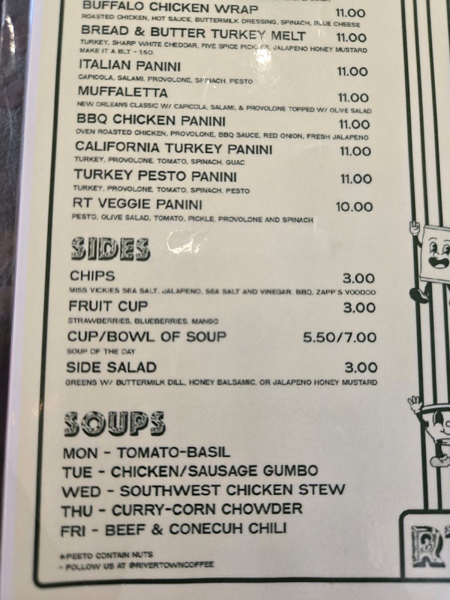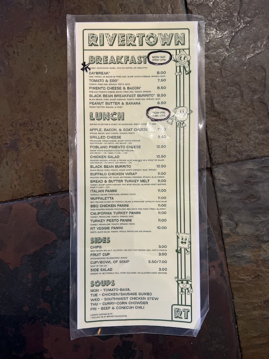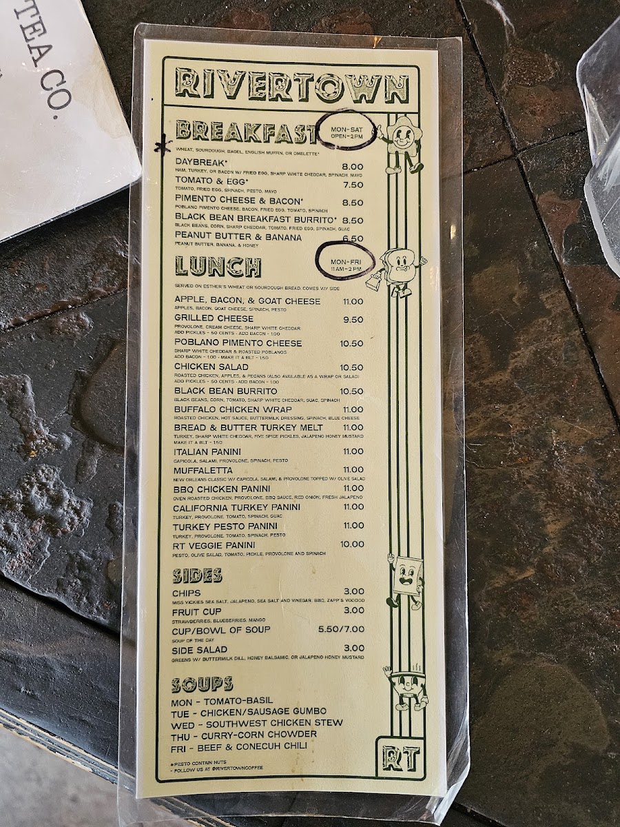 If you're in the mood for a cozy spot to enjoy a freshly brewed cup, look no further than the charming Rivertown Coffee Menu. Nestled in the heart of Florence, AL, this welcoming café offers a delightful variety of coffee, teas, and pastries. Whether you're stopping by for a quick espresso or indulging in a decadent latte, there's something for every coffee lover here. Their selection of baked goods pairs perfectly with any drink, making it the ideal place to relax or catch up with friends. With a warm, inviting atmosphere, Rivertown Coffee is more than just a place to grab your caffeine fix-it's a spot where you can unwind and savor every sip.